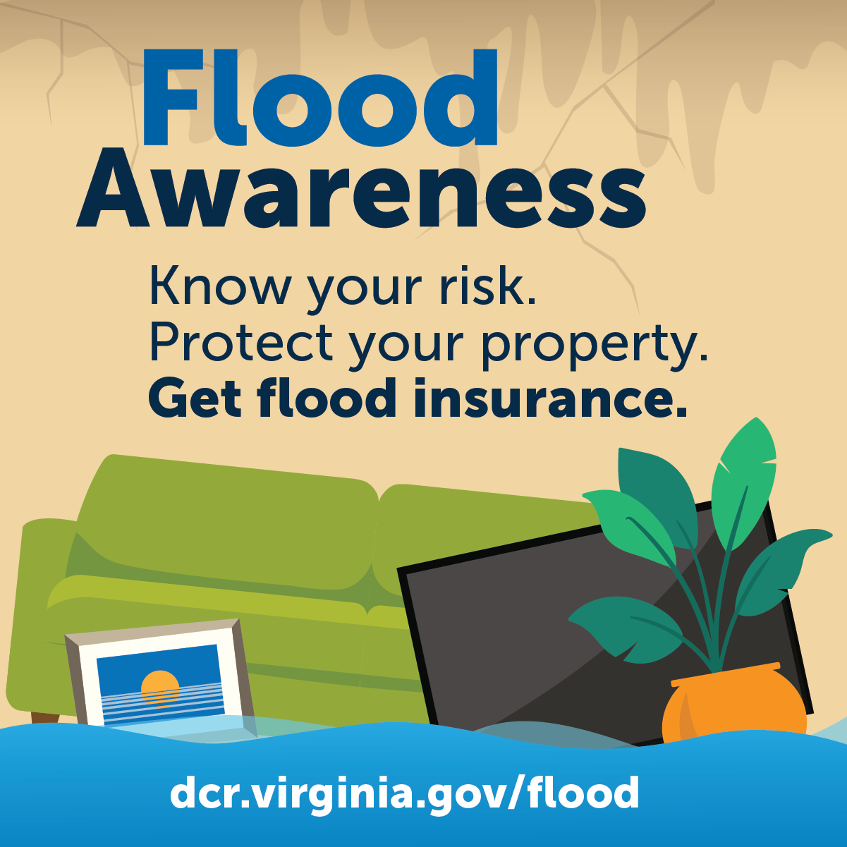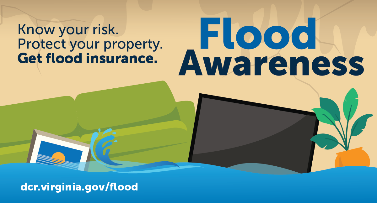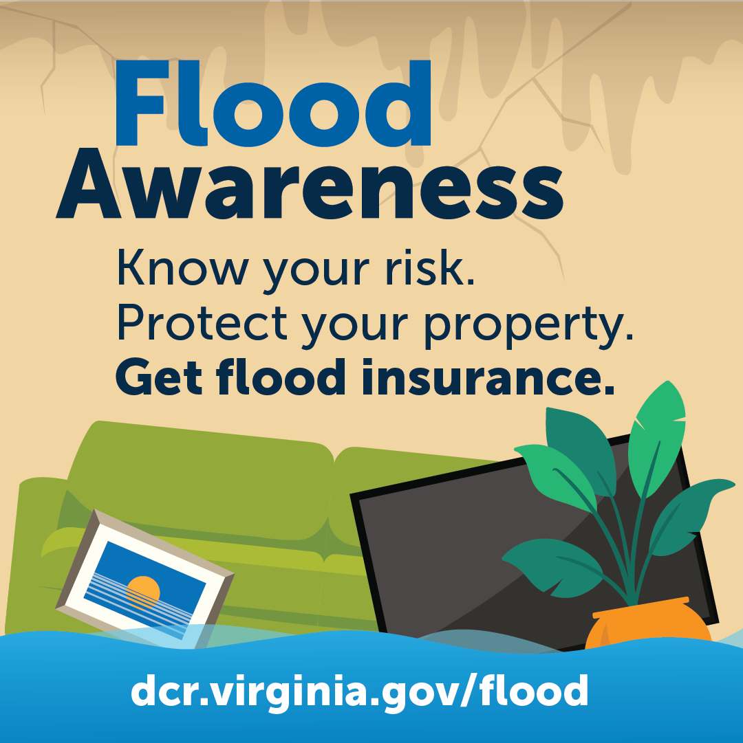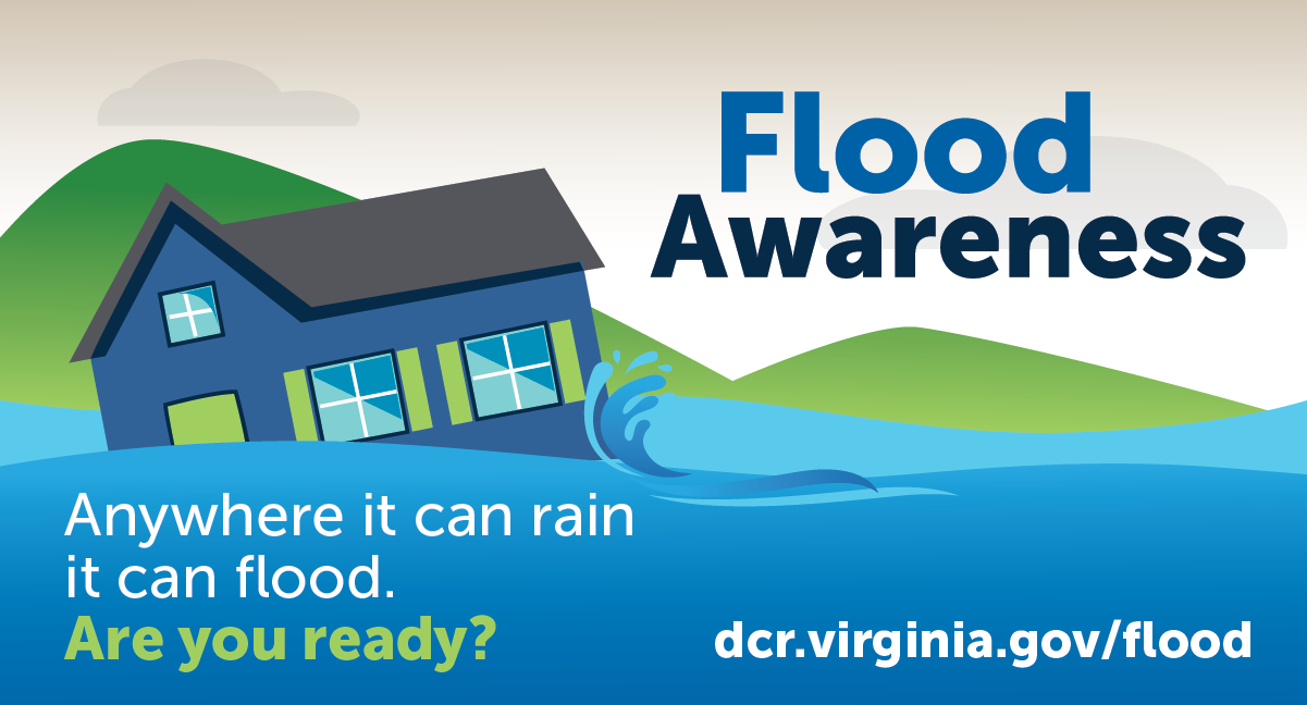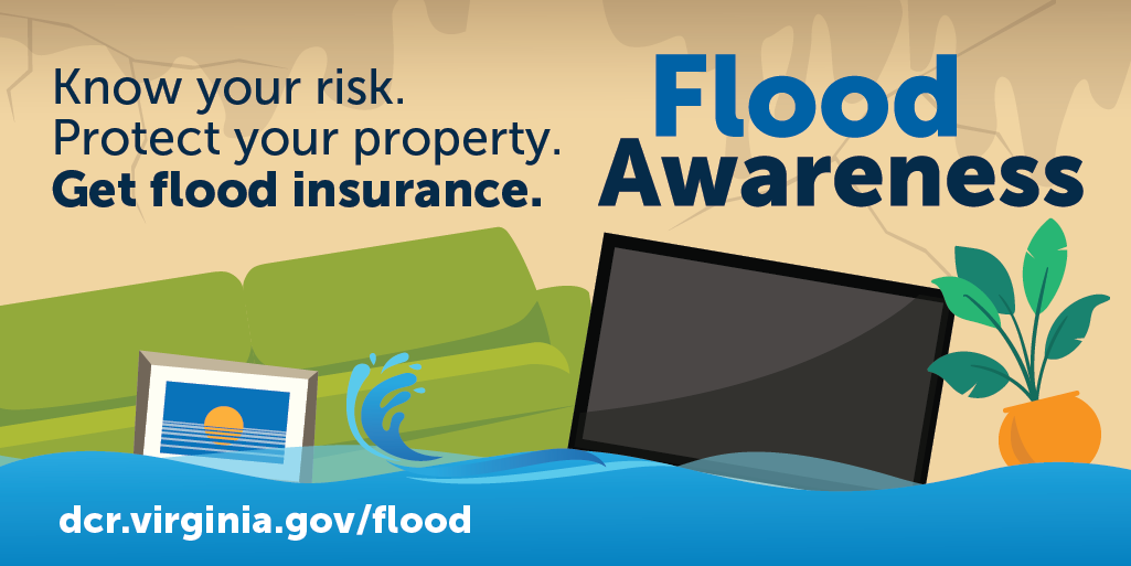 Departamento de Conservación y Recreación (DCR) 9de marzo -15 es la Semana de Concientización sobre Inundaciones de Virginia, un momento ideal para prepararse para posibles inundaciones antes de las lluvias de primavera y la próxima temporada de huracanes. La Semana de Concientización sobre Inundaciones de Virginia es una iniciativa para educar al público sobre el riesgo de inundaciones y promover la necesidad de un seguro contra inundaciones.