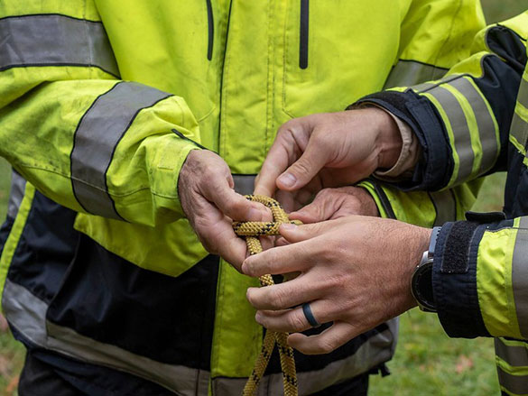 Practicando el atado de nudos en GSAR (Foto cortesía del Consejo de Búsqueda y Rescate de Virginia)
