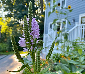 Las nuevas plantas incluyen la planta obediente (Physostegia virginiana) (en la foto de arriba), la onagra (Oenothera biennis), la menta de montaña (Pycnanthemum incanum) y el guisante de perdiz (Chamaecrista fasciculata).