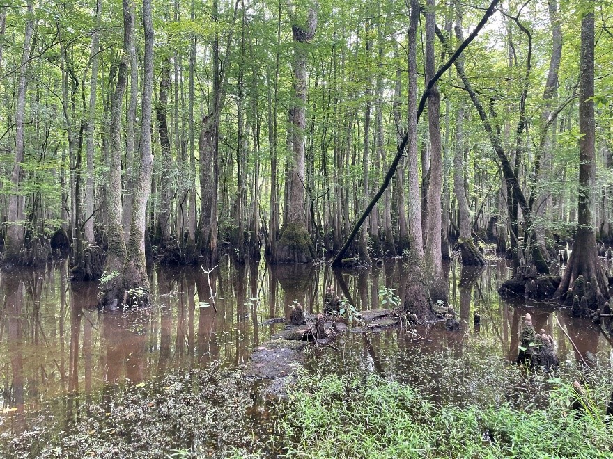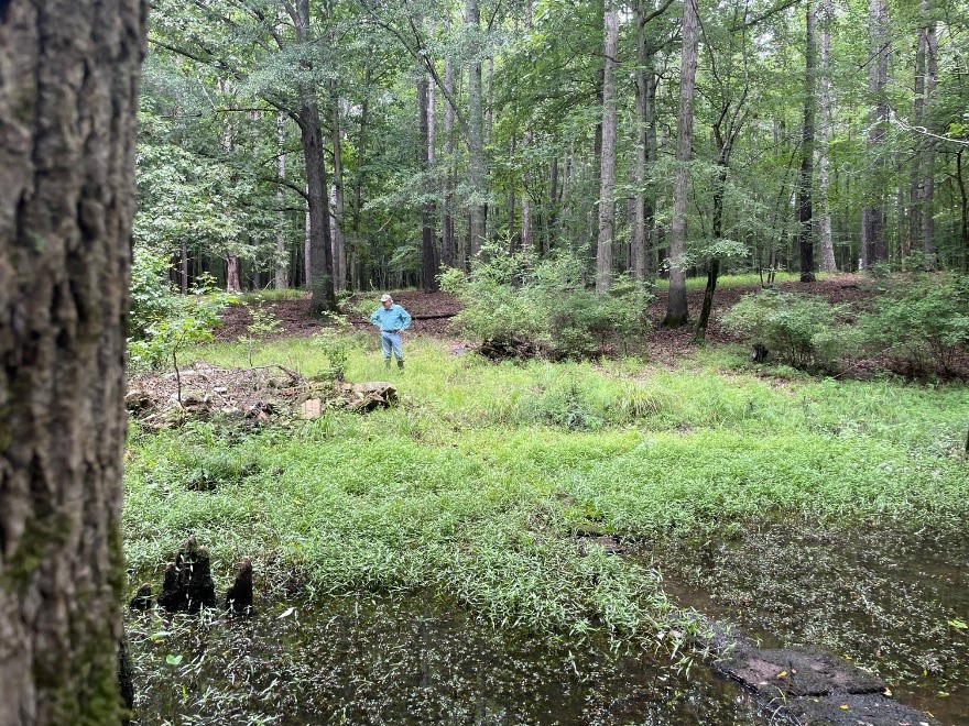 El proyecto de Taylors Mill Farm recibió una subvención de VLCF en el año fiscal23 por $400,000 y el DOF recibieron fondos adicionales para cubrir el costo inesperado más alto del estudio de límites requerido debido al terreno difícil, la falta de un estudio previo y el número limitado de postores dispuestos a realizar el trabajo. La propiedad es una granja familiar que se encuentra en el límite de Fountains Creek, al sureste de Emporia en el condado de Greensville. Esta propiedad tiene aproximadamente 1145 hectáreas, de las cuales 860 hectáreas están forestadas con bosque de alto valor de conservación (FCV 4/5). La propiedad contiene casi siete millas de arroyos perennes e intermitentes, y 640 acres de humedales. Aproximadamente 285 acres se encuentran en tierras agrícolas cultivables, la mayoría de las cuales son tierras agrícolas de primera calidad o tierras agrícolas de importancia estatal. Además, un Núcleo Ecológico se clasifica como C1 (Sobresaliente).