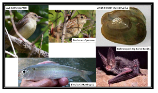 DCR’s Natural Heritage Division received VLCF funds to match a federal grant for the acquisition of 205 acres in Lee County as an addition to the Cedars Natural Area Preserve. The property lies within the Powell Ford Woodlands Conservation Site and borders the Powell River for approximately two miles on a section designated as the Powell River – Wallen Creek to Sewell Bridge Stream Conservation Unit. Acquisition of the tract would protect newly discovered populations of four significantly rare plant species, the headwaters and outflow of a natural spring with an unnamed (possibly new to science) isopod, and removed cattle grazing from the extensive riparian zone along the Powell River where a suite of rare mussels, fish and other aquatic species are known to occur. This project was withdrawn.
