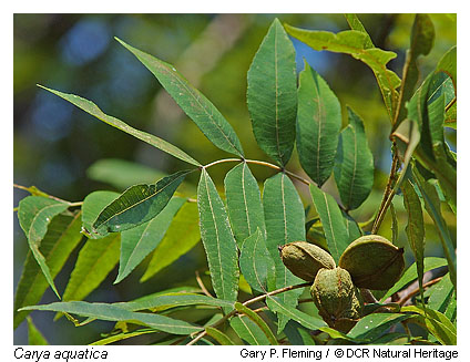 Characteristic tree species vary with stream order, soil type, flooding regime, and successional status. High, infrequently flooded terraces along brownwater rivers (e.g., the Nottoway) of southeastern Virginia support swamp chestnut oak (Quercus michauxii), cherrybark oak (Quercus pagoda), shagbark hickory (Carya ovata), and sweetgum Liquidambar styraciflua), with an understory of deciduous holly (Ilex decidua), American hornbeam (Carpinus caroliniana ssp. caroliniana and ssp. virginiana), Elliott's blueberry (Vaccinium elliottii), parsley hawthorn (Crataegus marshallii), and other species of relatively well-drained soils. In the same drainages, low terraces or swales on higher terraces support forests of green ash (Fraxinus pennsylvanica), water hickory (Carya aquatica), overcup oak (Quercus lyrata), and laurel oak (Quercus laurifolia), often with a minor component of bald cypress (Taxodium distichum) and water tupelo (Nyssa aquatica). These forests are usually flooded during the winter and early spring but exposed during much of the growing season. Their understory is typically open, with sedges and grasses (especially Carex typhina, Carex louisianica, and Leersia lenticularis) dominant in the herb layer. Analogous communities of the Piedmont and northern Coastal Plain are similar but with overstory dominance by willow oak (Quercus phellos) and pin oak (Quercus palustris).
