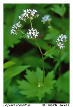 Las comunidades de acantilados de rociado ocurren en paredes rocosas constantemente húmedas dentro de las zonas de rociado o salpicaduras de las cascadas, o en acantilados protegidos saturados de filtraciones permanentes. Algunos ejemplos, dispersos por toda la región montañosa del estado, se conocen a partir de informes cualitativos. Tres de los mejores ejemplos son las paredes de las rocas de travertino en Falling Spring Falls (condado de Allegheny) y las paredes de arenisca en Abrams Falls (condado de Washington) y Cascades (condado de Giles). Estos han sido muestreados por briólogos, aunque solo Cascades ha recibido un trabajo intensivo. En este momento, muy poco se puede decir sobre la dinámica ecológica o la composición florística de estos sucesos. Según las observaciones, los musgos y las hepáticas suelen ser las plantas dominantes, con las especies vasculares más escasamente enraizadas en las grietas y en los estantes cubiertos de musgo o humus. Entre las plantas vasculares más características y extendidas se encuentran la saxifraga de arroyo (Boykinia aconitifolia), la solanácea de pequeño encantador (Circaea alpina ssp. alpina), la raíz de alumbre de flores pequeñas (Heuchera parviflora var. parviflora), el musgo de roca (Huperzia porophila), las saxifragas (Micranthes caroliniana y Micranthes micranthidifolia), la ruda de los prados de montaña (Thalictrum clavatum), y varios helechos litófitos.