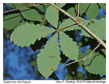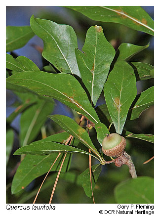 Non-riverine saturated forests are frequently referred to as wet flatwoods. Most remaining examples of this vegetation occur on the outer Coastal Plain from the Eastern Shore to the Embayed Region, but scattered stands are also present in the inner and northern parts of the region. Habitats are nearly flat, with seasonally perched water tables. Some sites experience periodic sheet flows of anastomosing seepage from adjacent slope-base springs. Shallow, braided channels and depressions which pond water intermittently are frequent habitat features. Soils are silt, sand, and clay loams, sometimes with a thin (< 30 cm [12 in]) mantle of coarse, fibric peat. Late-successional stands of non-riverine saturated forests contain mixtures of hydrophytic oaks (Quercus spp.). Dominants, varying regionally, include swamp chestnut oak (Quercus michauxii), cherrybark oak (Quercus pagoda), willow oak (Quercus phellos), laurel oak (Quercus laurifolia), water oak (Quercus nigra), pin oak (Quercus palustris), and white oak (Quercus alba). Cutting and other disturbances result in higher proportions of sweetgum (Liquidambar styraciflua), red maple (Acer rubrum), and other intolerant trees. Small trees and shrubs include American hornbeam (Carpinus caroliniana), switch cane (Arundinaria tecta), American holly (Ilex opaca var. opaca), sweet pepperbush (Clethra alnifolia), sweetbay magnolia(Magnolia virginiana var. virginiana), coastal dog-hobble (Leucothoe axillaris), and highbush blueberries (Vaccinium spp.). Herb layers tend to be depauperate, but usually contain netted chain fern (Lorinseria areolata) and a variety of sedges, (e.g., Carex abscondita, Carex debilis, Carex intumescens var. intumescens). Large, rhizomatous colonies of Virginia chain fern (Anchistea virginica) and/or the sedges Carex striata var. brevis, Carex bullata var. greenei, and Carex barrattii occasionally dominate. Late-successional non-riverine saturated forests have been greatly reduced in extent or modified by extensive agricultural clearing, logging, conversion to pine silvicultures, and hydrologic alterations such as ditching and draining. Both oak-dominated community types in this group (see below) are now globally rare. Associated rare species in southeastern Virginia include the globally rare Virginia least trillium (Trillium pusillum var. virginianum), the federally listed Dismal Swamp southeastern shrew (Sorex longirostris fisheri), and the state-listed canebrake rattlesnake (Crotalus horridus atricaudatus).