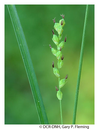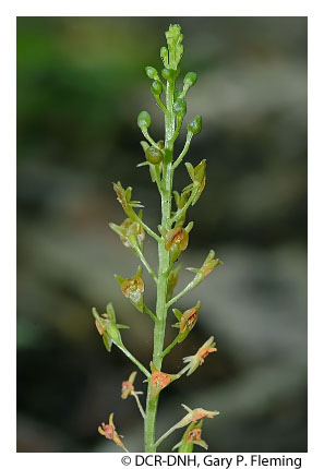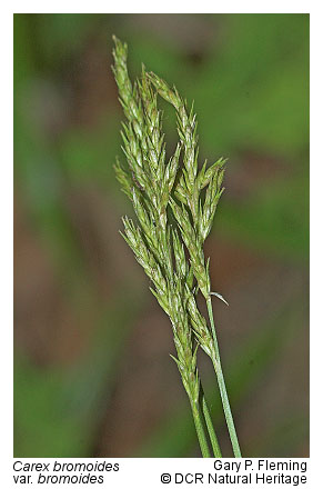 Seepage swamps occupying the bottoms of Coastal Plain ravines that have downcut into Tertiary shell deposits or limesands have strongly calcareous soils and groundwater. These very rare, small-patch communities are known from the dissected inner Coastal Plain of Surry, Isle of Wight, York, James City, Gloucester, and Lancaster Counties. Hummock-and-hollow microtopography is prevalent, and exposed shells are common in springs and rills. Green ash (Fraxinus pennsylvanica), red maple (Acer rubrum), and tulip-tree (Liriodendron tulipifera) are common overstory trees in most occurrences, but a subset of ravines on the south side of the James River features the unusual co-dominance of bald cypress (Taxodium distichum) or swamp tupelo (Nyssa biflora). Small trees and shrubs include stiff dogwood (Cornus foemina ), spicebush (Lindera benzoin var. benzoin and var. pubescens), and wax myrtle (Morella cerifera). A number of noteworthy mountain disjuncts have been documented in the herbaceous flora of these communities, including marsh marigold (Caltha palustris var. palustris), rigid sedge (Carex tetanica), bog twayblade (Liparis loeselii; state-rare), swamp lousewort (Pedicularis lanceolata), and American false-hellebore (Veratrum viride). Reaching their northern limits are the southern species Florida adder's-mouth (Malaxis spicata), shadow witch orchid (Ponthieva racemosa), and drooping bulrush (Scirpus lineatus). Other characteristic herbs include lizard's-tail (Saururus cernuus), golden ragwort (Packera aurea), blackfruit clearweed (Pilea fontana), smooth bur-marigold (Bidens laevis), Carolina buttercup (Ranunculus carolinianus), common brome sedge (Carex bromoides spp. bromoides), and common wood reedgrass (Cinna arundinacea). The damp, fertile habitats are particularly susceptible to invasion by the introduced Japanese stiltgrass (Microstegium vimineum). The globally rare Tidewater interstitial amphipod (Stygobromus araeus) appears to be closely associated with groundwater in shell marl deposits.