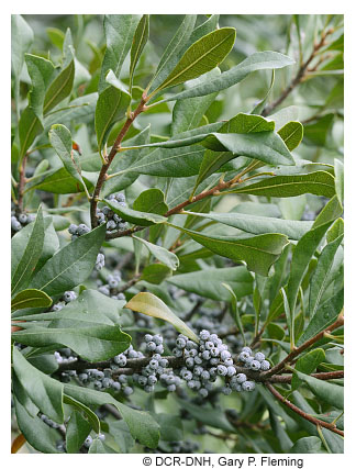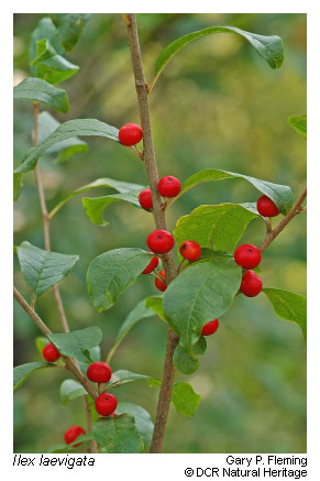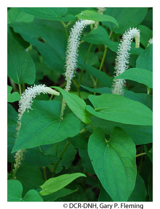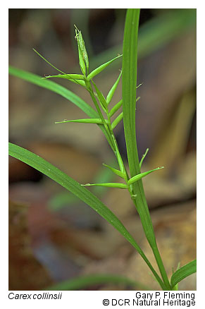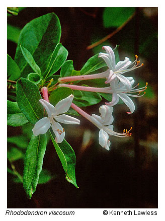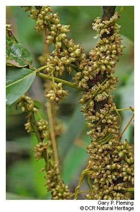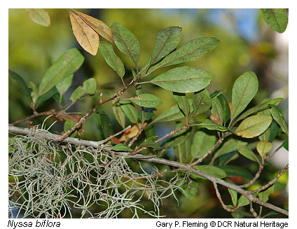 The more acidic and nutrient-poor seepage swamps, occurring primarily in the Coastal Plain, are characterized by Sphagnum-covered hummocks in a sandy or peaty substrate. The habitats are generally wet and somewhat protected from fire, although adjacent upland forests are generally pyrophytic; there is little doubt that prior to widespread exclusion of wildfires, fire occasionally burned into these habitats during dry periods. Dominant overstory species are red maple (Acer rubrum) and blackgum (Nyssa sylvatica), with tulip-tree (Liriodendron tulipifera) and loblolly pine (Pinus taeda) also locally important. Common small trees and shrubs are sweetbay magnolia (Magnolia virginiana var. virginiana), sweet pepperbush (Clethra alnifolia), highbush blueberries (Vaccinium spp.), swamp azalea (Rhododendron viscosum var. viscosum), smooth winterberry (Ilex laevigata), and southern wild raisin (Viburnum nudum). Compact dodder (Cuscuta compacta) is often abundantly attached to the stems of shrubs in these swamps. Common herbaceous species include cinnamon fern (Osmundastrum cinnamomeum), netted chain fern (Lorinseria areolata), and the sedges Carex lonchocarpa and Carex seorsa. Less widespread herbaceous species that could be considered more or less diagnostic (especially on the Coastal Plain) include skunk cabbage (Symplocarpus foetidus), kidney-leaved grass-of-parnassus (Parnassia asarifolia), Collins's sedge (Carex collinsii), twining bartonia (Bartonia paniculata ssp. paniculata), and the federally listed swamp-pink (Helonias bullata).