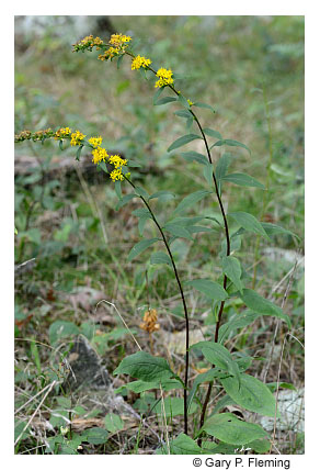 Dominance by northern red oak (Quercus rubra) characterizes these forests, which reach maximal importance at elevations above 900 m (3,000 ft) throughout western Virginia. Similar forests are found throughout higher elevations of the Southern and Central Appalachians. Although composition varies with parent material and landscape position, prolonged weathering and limited accumulation of soil organic matter have generally resulted in moderately to strongly infertile soils and consequently moderate to low species richness. In addition to the prevalent red oaks, scattered associates of white oak (Quercus alba), birches (Betula alleghaniensis and Betula lenta), and black cherry (Prunus serotina var. serotina) are often present in the overstory. Typical small trees and shrubs include mountain holly (Ilex montana), witch-hazel (Hamamelis virginiana), striped maple (Acer pensylvanicum), minnie-bush (Menziesia pilosa), early azalea (Rhododendron prinophyllum), beaked hazelnut (Corylus cornuta var. cornuta), and sprouts of American chestnut (Castanea dentata). In southwestern Virginia stands with Southern Appalachian affinities, flame azalea (Rhododendron calendulaceum), southern mountain cranberry (Vaccinium erythrocarpum), and mountain highbush blueberry (Vaccinium simulatum) are characteristic shrubs. Stands typically contain ground layers of hayscented fern (Dennstaedtia punctilobula), New York fern (Parathelypteris noveboracensis), low ericaceous shrubs (e.g., lowbush blueberry, [Vaccinium pallidum]), or patches of graminoids such as Pennsylvania sedge (Carex pensylvanica) and wavy hairgrass (Avenella flexuosa). Other characteristic herbs include fly-poison (Amianthium muscitoxicum), poke milkweed (Asclepias exaltata), panicled hawkweed (Hieracium paniculatum), whorled loosestrife (Lysimachia quadrifolia), eastern lousewort (Pedicularis canadensis), rattlesnake-roots (Prenanthes spp.), whorled aster (Oclemena acuminata), cut-leaved goldenrod (Solidago arguta var. arguta), and Curtis' goldenrod (Solidago curtisii).