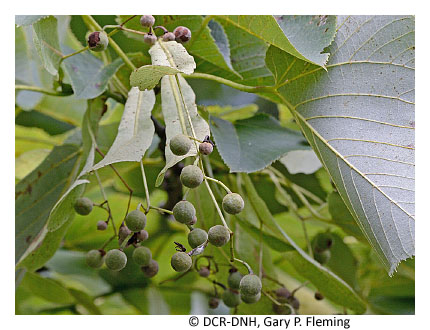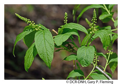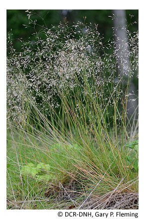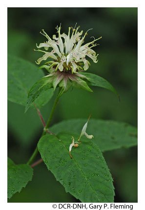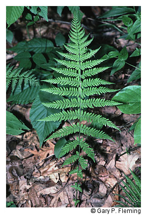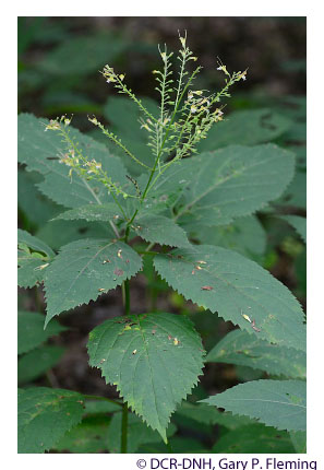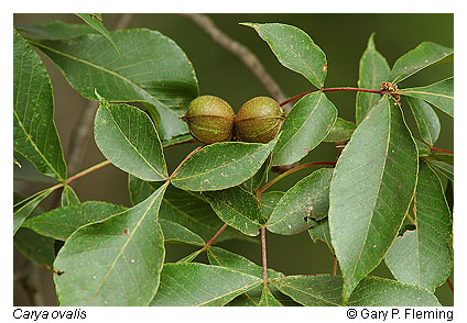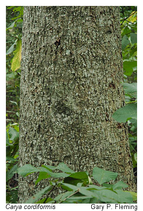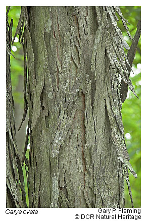 Montane oak-hickory forests reach maximal importance on base-rich igneous, metamorphic, and subcalcareous sedimentary rocks. Two types occur throughout western Virginia: a submesic to mesic, rich type with a notably lush herb layer, and a drier, more acidic type with a diverse, often graminoid-dominated herb layer. Northern red oak, white oak, red hickory (Carya ovalis), and shagbark hickory (Carya ovata) are typical co-dominant trees, although in most stands oaks attain greater importance in the overstory than do hickories (Carya spp.), which often reach maximal density and cover in the understory. The chestnut oak is important only in the drier type, while mesophytic trees such as basswood (Tilia americana var. americana and var. heterophylla), bitternut hickory (Carya cordiformis), and sugar maple (Acer saccharum) are frequent associates in the rich type. The shrub layer of these communities is often sparse, and herbaceous composition varies with geography and site conditions. A widespread compositional variant on moist sites features extensive, nearly monospecific colonies of interrupted fern (Osmunda claytoniana). Fertile sites often support a diverse herbaceous flora, including such nutrient-demanding forbs as purple giant hyssop (Agastache scrophulariifolia), white bergamot (Monarda clinopodia), cutleaf coneflower (Rudbeckia laciniata var. laciniata), pale-leaved sunflower (Helianthus strumosus), richweed (Collinsonia canadensis), yellow jewelweed (Impatiens pallida), common black cohosh (Actaea racemosa), starry campion (Silene stellata), stout goldenrod (Solidago squarrosa), hairy-jointed meadow parsnip (Thaspium barbinode), and Appalachian meadow-rue (Thalictrum coriaceum). The luxuriance of such herb layers rivals that of the Rich Cove and Slope Forests. The drier type of montane oak-hickory forest features patch-dominance by Pennsylvania sedge (Carex pensylvanica), Porter's reedgrass (Calamagrostis porteri), wavy hairgrass (Avenella flexuosa), and xerophytic forbs.