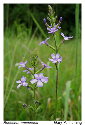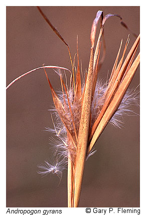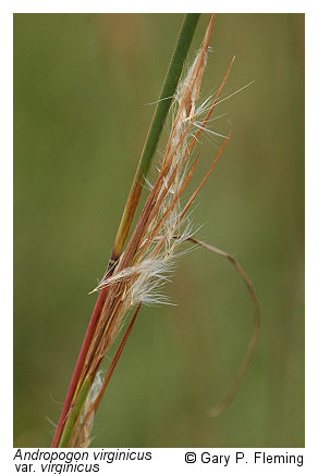 Stand physiognomy encompasses semi-closed woodlands with little understory; graminoid-rich savannas with widely spaced trees; and dense thickets of small, sprout-origin trees. Field experience has demonstrated that physiognomy can be temporally and spatially dynamic, with vegetation structure in a given stand frequently changing in response to fire or a lengthy interval without fire. Variable mixtures of white oak (Quercus alba), black oak (Quercus velutina), southern red oak (Quercus falcata), scarlet oak (Quercus coccinea), post oak (Quercus stellata), and mockernut hickory (Carya tomentosa), along with scattered loblolly and shortleaf pines (Pinus taeda and (Pinus echinata), form the woodland overstories. Understories are highly variable in both density and composition. Dense herb layers are rich in both grasses and legumes. Abundant species include little bluestem (Schizachyrium scoparium var. scoparium), indian grasses (Sorghastrum nutans and Sorghastrum elliottii), broomsedges (Andropogon virginicus var. virginicus, Andropogon ternarius, and Andropogon gyrans), poverty oatgrass (Danthonia spicata), silver plumegrass (Erianthus alopecuroides), tick-trefoils (Desmodium spp.), and bush-clovers (Lespedeza spp.). Goldenrods (Solidago spp., especially Solidago nemoralis var. nemoralis and Solidago juncea), thoroughworts (Eupatorium spp.), and other composites are characteristic of the diverse late-flowering flora of the woodlands. Additional species that are important in some stands include purple false-foxglove (Agalinis purpurea), purple three-awn grass (Aristida purpurascens), scaly blazing star (Liatris squarrosa var. squarrosa), narrow-leaf mountain-mint (Pycnanthemum tenuifolium), orange coneflower (Rudbeckia fulgida), and papillose nutrush (Scleria pauciflora var. pauciflora).