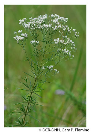 Aunque es probable que la mayoría de los pastizales anteriores a la colonización hayan sido parte de mosaicos de parches de bosques, puede haber habido parches de pastizales más grandes, en su mayoría sin árboles, que constituyeron el análogo del Piamonte a las praderas del Medio Oeste. No hay restos de tales praderas en el paisaje contemporáneo, y ahora es imposible determinar su extensión original; Pero el componente de pastizales de las sabanas de las bases militares, así como los parches de vegetación herbácea nativa en algunos campos antiguos y claros de líneas eléctricas, probablemente tengan composiciones de especies de plantas similares a las praderas anteriores a los asentamientos. Los bosques abiertos, las sabanas y los pastizales proporcionan un hábitat para muchas de las plantas raras del Piamonte, amantes de la luz, como la vara de oro rígida (Solidago rigida var. rigida), la menta de montaña de Torrey (Pycnanthemum torreyi), la dedalera falsa de hoja de oreja (Agalinis auriculata) y el corazón azul americano (Buchnera americana). La población más grande conocida en el mundo del arbusto mundialmente raro y incluido en la lista federal de zumaque de Michaux (Rhus michauxii) está asociada con los bosques influenciados por el fuego en Fort Pickett.