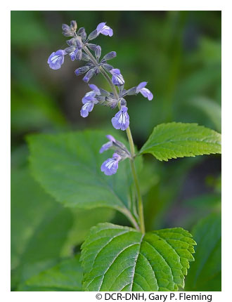 Los rodales en suelos básicos tienen una flora herbácea más rica en especies, caracterizada por hierbas, como la salvia de hoja de ortiga (Salvia urticifolia), la quinina silvestre de claro (Parthenium auriculatum), el trébol de garrapatas de flor desnuda (Hylodesmum nudiflorum), el verde y dorado (Chrysogonum virginianum var. virginianum), la campanilla perfoliada (Uvularia perfoliata), los girasoles (Helianthus strumosus y Helianthus divaricatus), pequeña raíz de serpiente blanca (Ageratina aromatica), ruda de pradera (Thalictrum revolutum) y maní de cerdo (Amphicarpaea bracteata).