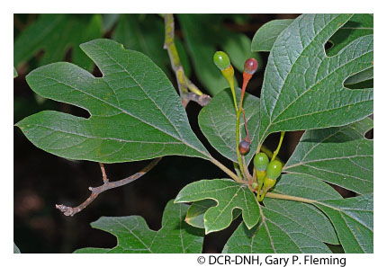These deciduous, coniferous, and broadleaf evergreen woodlands occur on back dunes protected from regular salt spray. Similar communities occur along the Atlantic and Gulf coasts from New Jersey to Texas. Compared to maritime upland forests, these woodlands have a much more open canopy and are more localized and restricted to xeric dune systems. Habitats are commonly on convex, rapidly drained dunes and less frequently on xeric sand flats. Floristic composition of communities in this group varies considerably with geography. Along the southeastern Virginia coast (City of Virginia Beach), live oak (Quercus virginiana), bluejack oak (Quercus incana), and sassafras (Sassafras albidum) dominate stands, with loblolly pine (Pinus taeda), black cherry (Prunus serotina var. serotina) and hercules'-club (Zanthoxylum clava-herculis) as less abundant associates. In the same area, and northward on the Eastern Shore (Accomack and Northampton Counties), a community type of widely spaced loblolly pine with scattered, scrubby oaks (e.g ., (Quercus nigra and Quercus falcata), dwarf-shrub patches of sand heather (Hudsonia tomentosa), and large areas of exposed sand occurs on the highest back-dune systems (the so-called "Great Dunes"). Another xeric back-dune community dominated by black cherry, prickly-pear (Opuntia humifusa), and seaside little bluestem (Schizachyrium littorale) has been documented at two Eastern Shore locations. Eastern redcedar (Juniperus virginiana) dominates a few dune woodlands on the maritime barrier islands of the Eastern Shore. Scattered herbaceous plants that occur in these woodlands include sea-beach needlegrass (Aristida tuberculosa), cottony golden-aster (Chrysopsis gossypina), yellow thistle (Cirsium horridulum var. horridulum), oval flowered panic grass (Dichanthelium ovale var. ovale), coastal bedstraw (Galium bermudense), Canada frostweed (Crocanthemum canadense), woolly ragwort (Packera tomentosa), dune ground-cherry (Physalis walteri), coastal jointweed (Polygonella articulata), and grass-leaved golden-aster (Pityopsis nervosa). All communities in this group are considered globally and state rare.