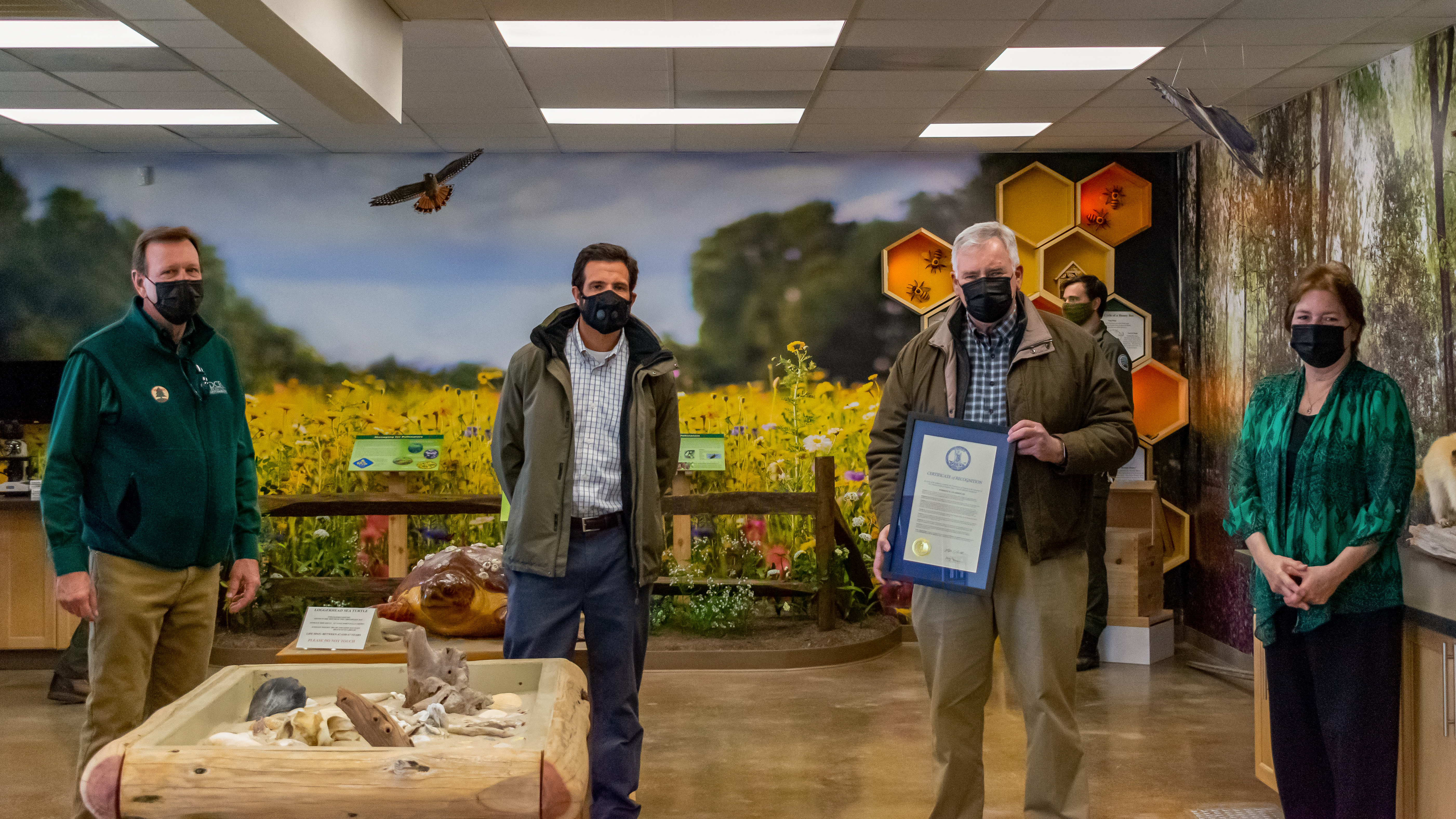 Un extracto de la proclama dice: "... Considerando que, la División de Parques Estatales de Virginia siempre estará en deuda con su liderazgo que ha establecido un alto estándar de excelencia para innumerables líderes actuales y futuros..."
