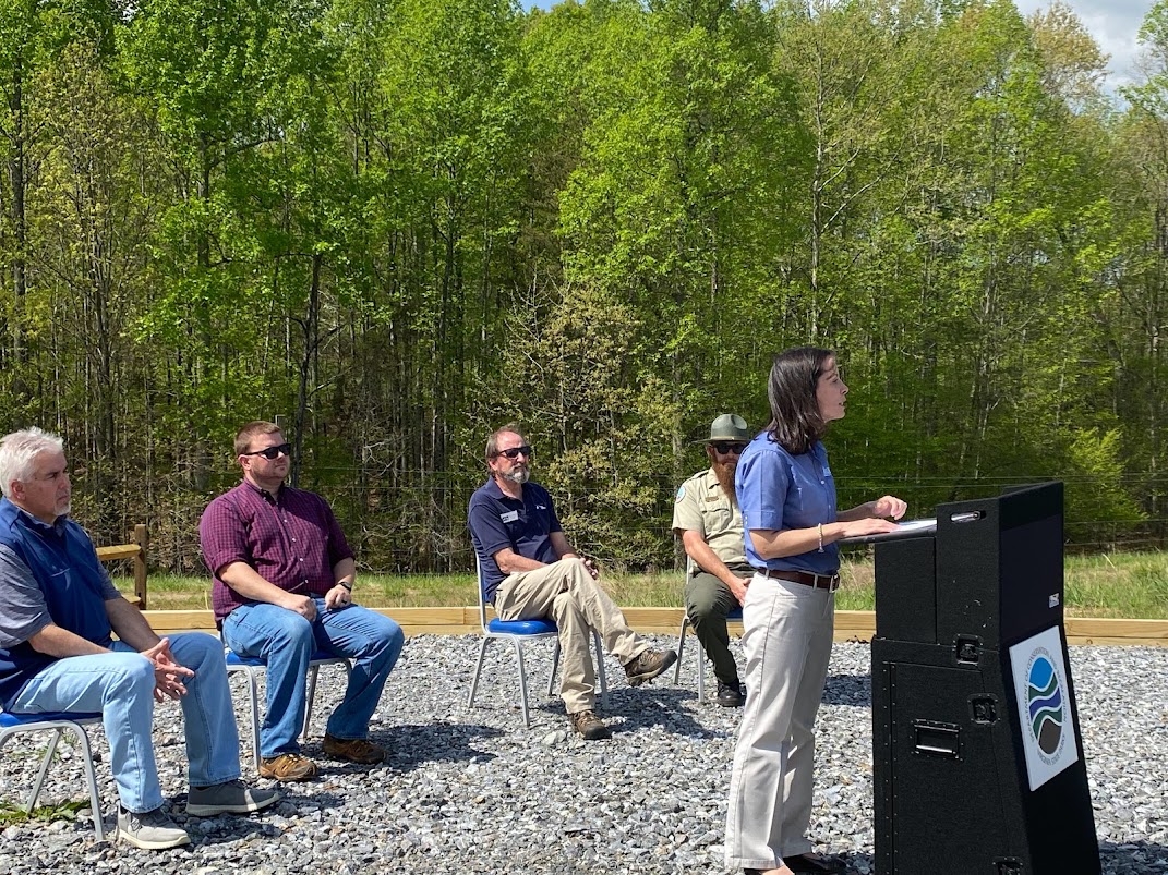 SPENCER, Va. - Ciudadanos, representantes y líderes empresariales se reunieron el viernes 22de abril para inaugurar un nuevo sistema de senderos en el sitio del futuro Parque Estatal del Río Mayo de Virginia en el condado de Henry. El evento coincidió con el Día de la Tierra, una celebración internacional en apoyo de la protección del medio ambiente.