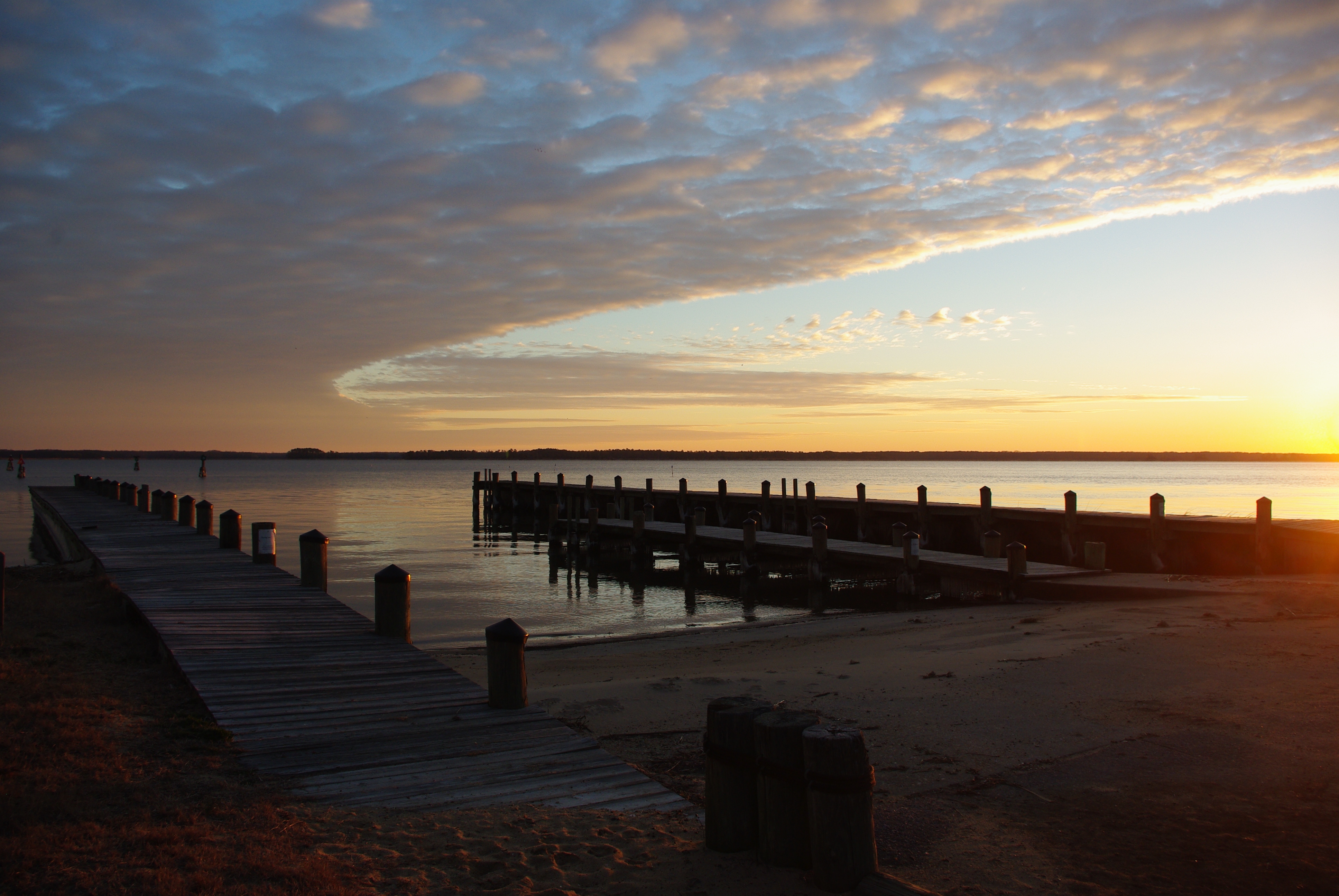 (Editores: Sigan este enlace para descargar una imagen. Pie de foto: Rampa para botes de desembarco de Croaker en el Parque Estatal del Río York al atardecer).