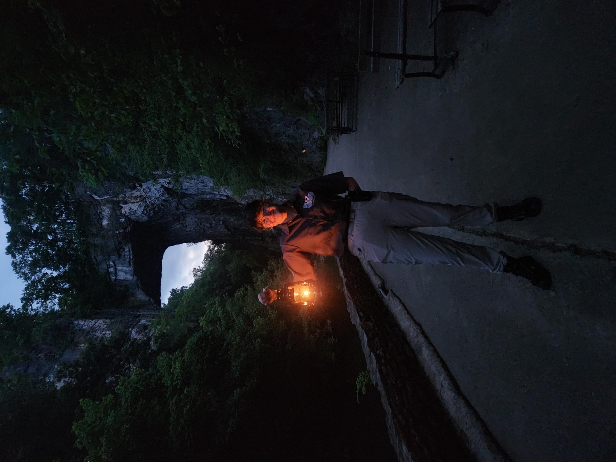 (Editores: Siga este enlace para descargar una imagen. Pie de foto: Haunted History Lantern Tour en Natural Bridge)