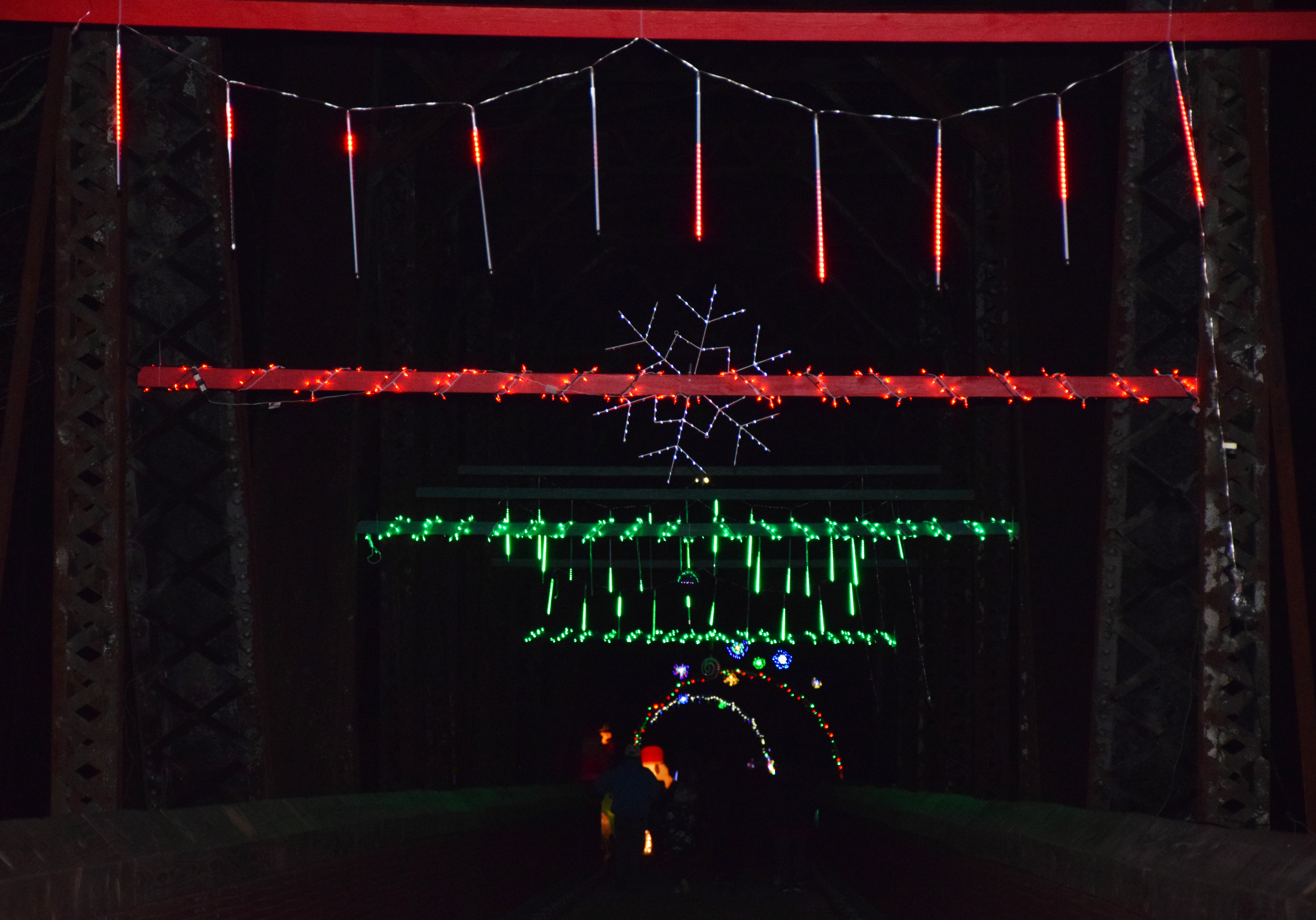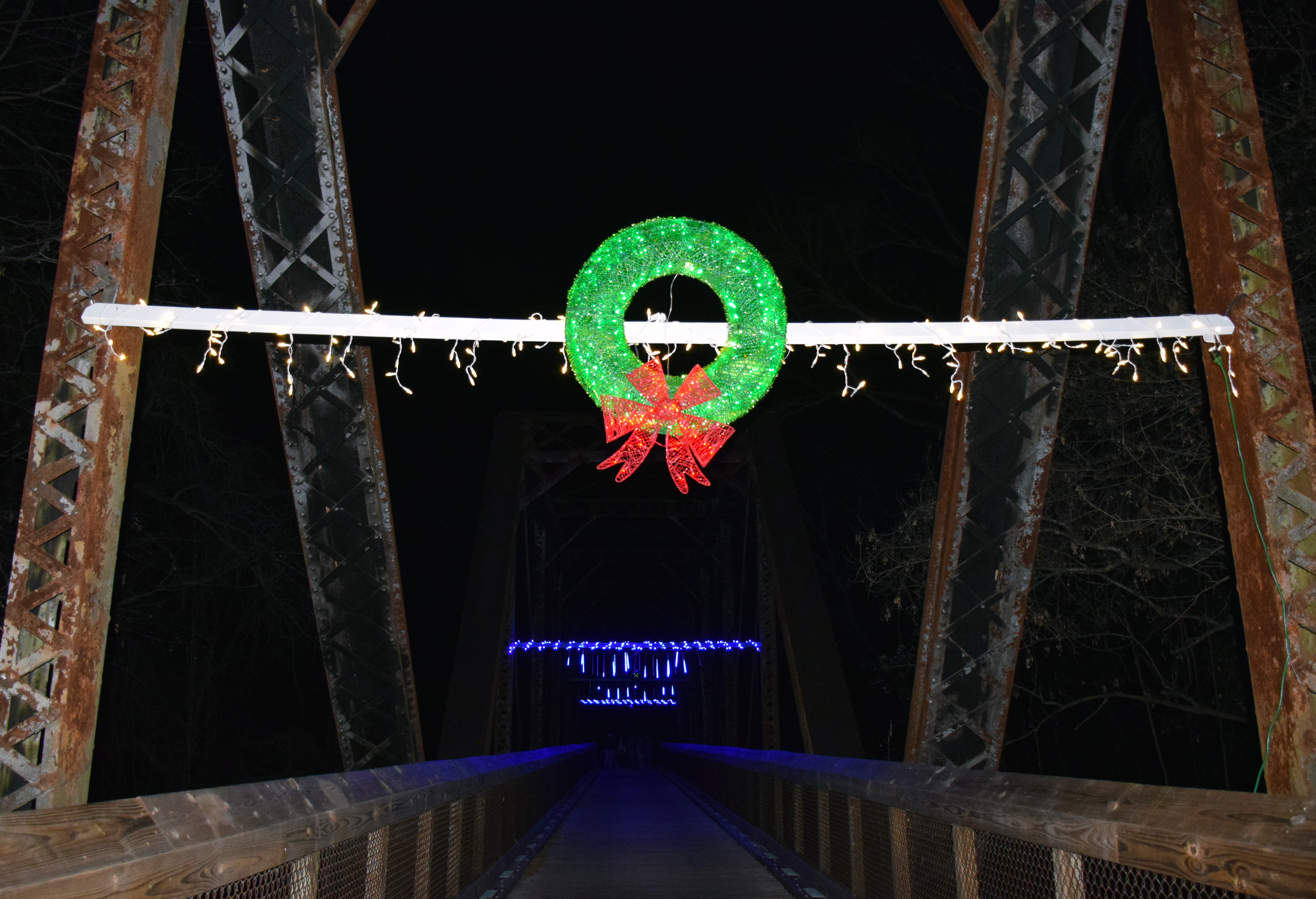 (Editores: Sigan este enlace para descargar una imagen. Pie de foto: Puente del río Staunton con luces navideñas)
