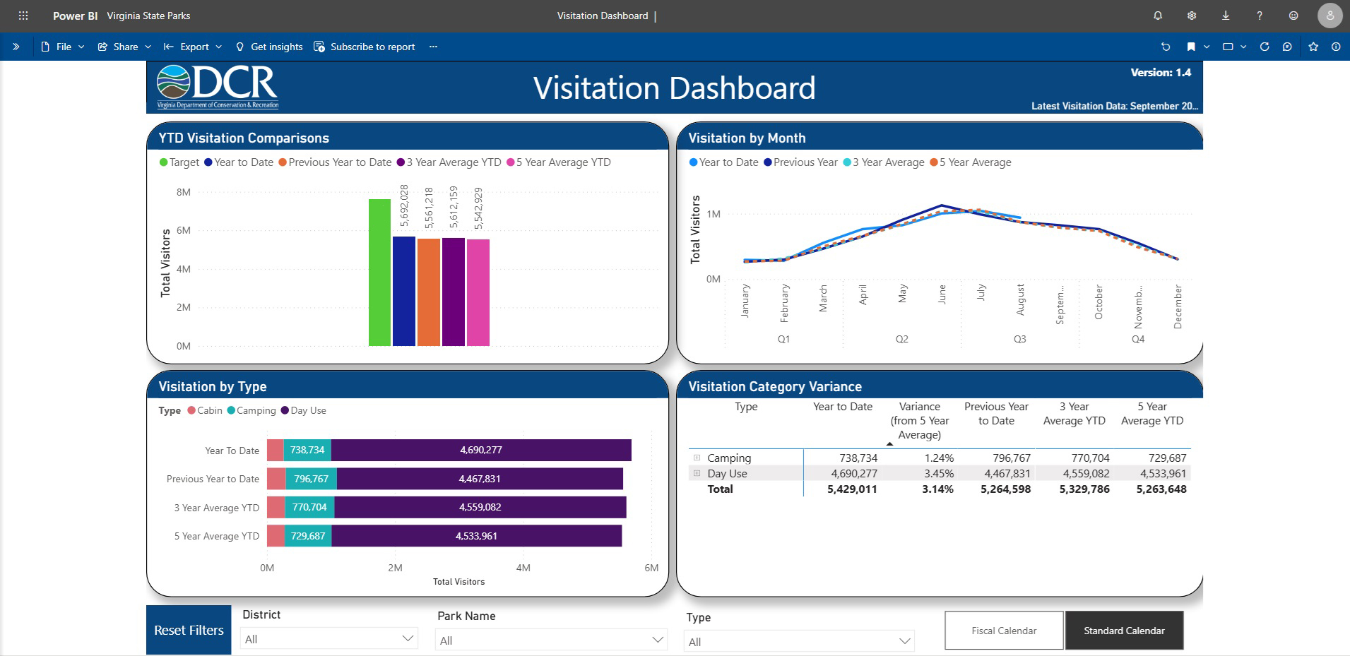 Virginia State Parks’ Data Dashboards now have increased efficiency by consolidating data and information into a customizable, real-time interface that offers immediate access to reservation trends, visitor demographics, programing and financial performance. This allows rangers to spot errors, evaluate budgets, analyze trends and make informed financial decisions within a single system.