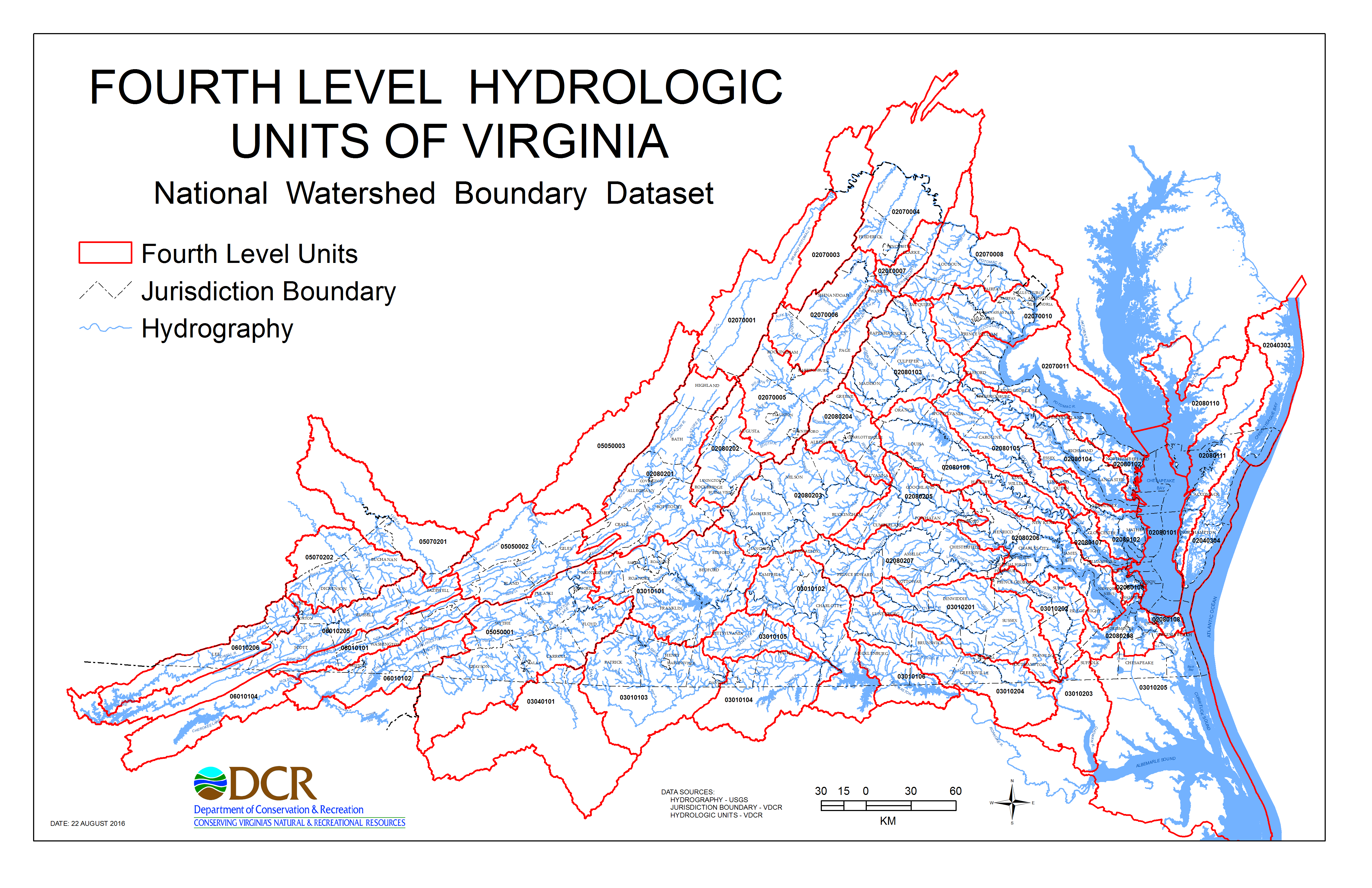 Como parte del proceso de desarrollo de WBD en Virginia, las unidades de 6nivel fueron delineadas por el DCR para preservar la mayor parte posible de la intención de los límites de la Unidad Hidrológica de Virginia 1995 con el fin de hacer la transición entre los dos sistemas menos complicada.