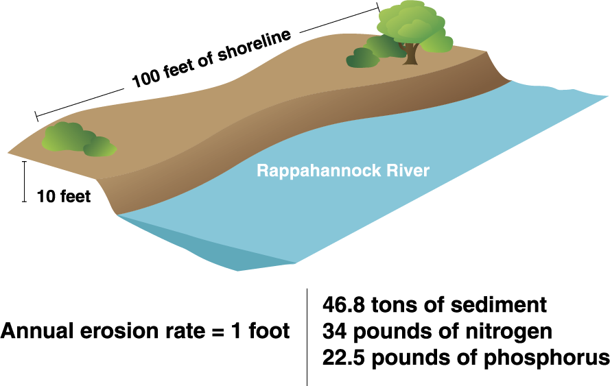 Las costas de la bahía de Chesapeake y las desembocaduras de los principales ríos de Virginia son especialmente vulnerables a la erosión. Esto se debe a la búsqueda. Fetch es la distancia de aguas abiertas sobre la que puede soplar el viento. Cuanto mayor sea la distancia de búsqueda, mayor será la onda potencial durante las tormentas.