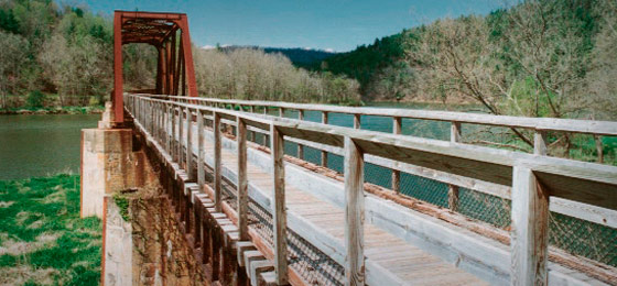 - Tres puentes principales: Hiwassee, de 951 pies; Ivanhoe - 670 pies; Fries Junction - 1,089 pies