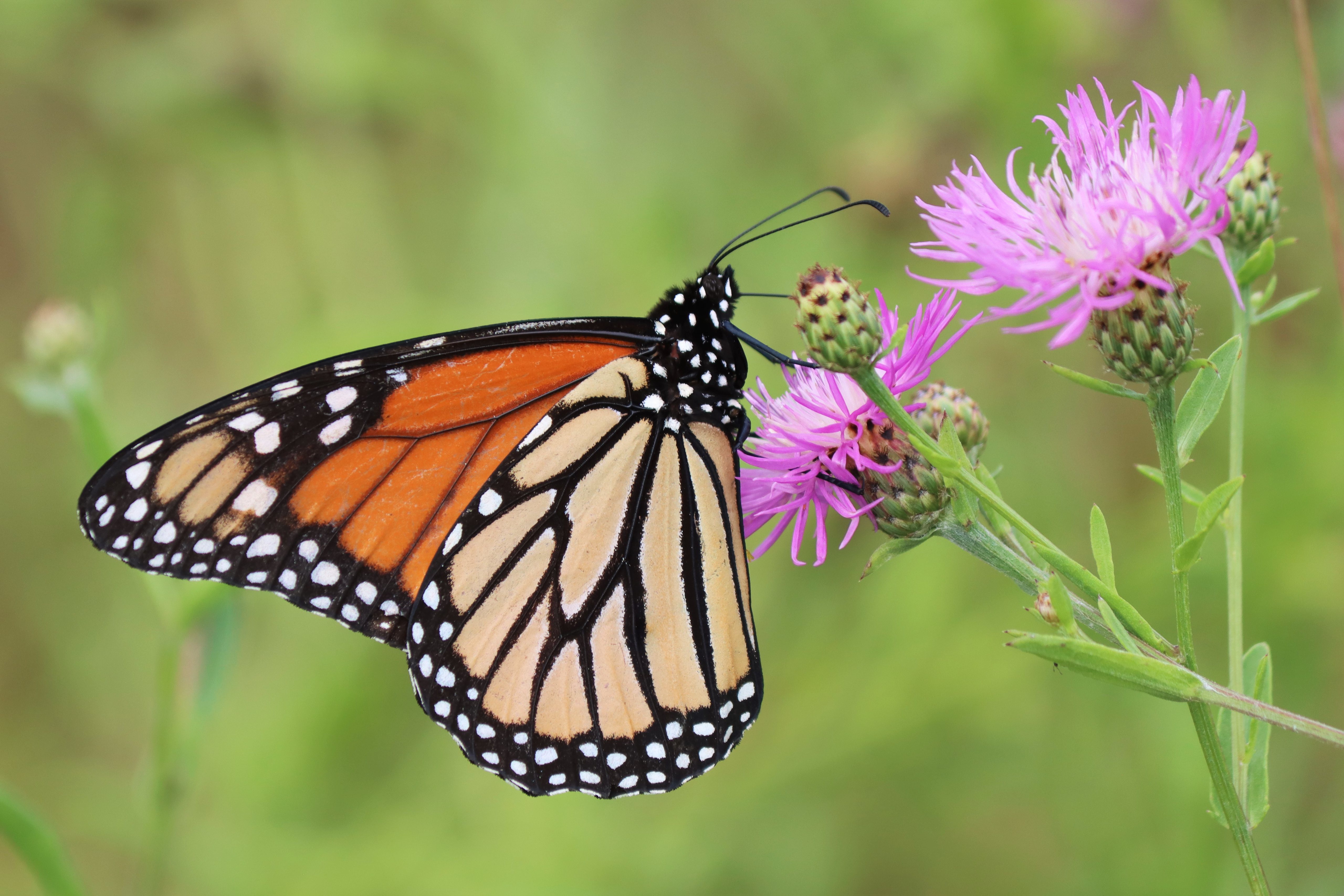 (Editores: Sigan este enlace para descargar una imagen. Pie de foto: Una mariposa monarca bebe un poco de néctar cerca del Centro de Visitantes, Parque Estatal Sailor's Creek Battlefield)