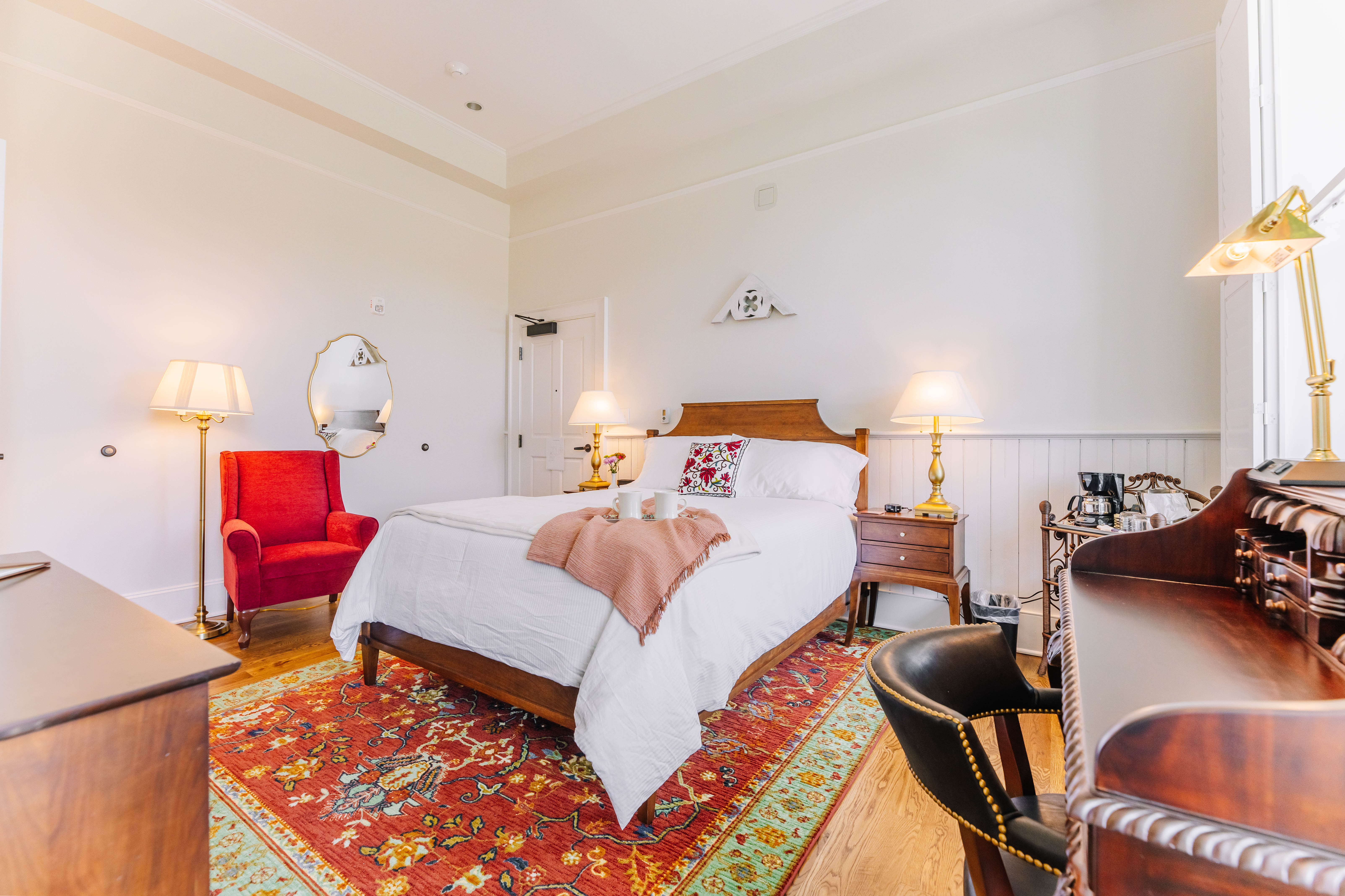 Las chimeneas que funcionan se ven como en 1888, y los muebles antiguos y de reproducción permiten comodidades modernas como camas tamaño queen y king, mini-nevera, hornos de microondas y televisores.