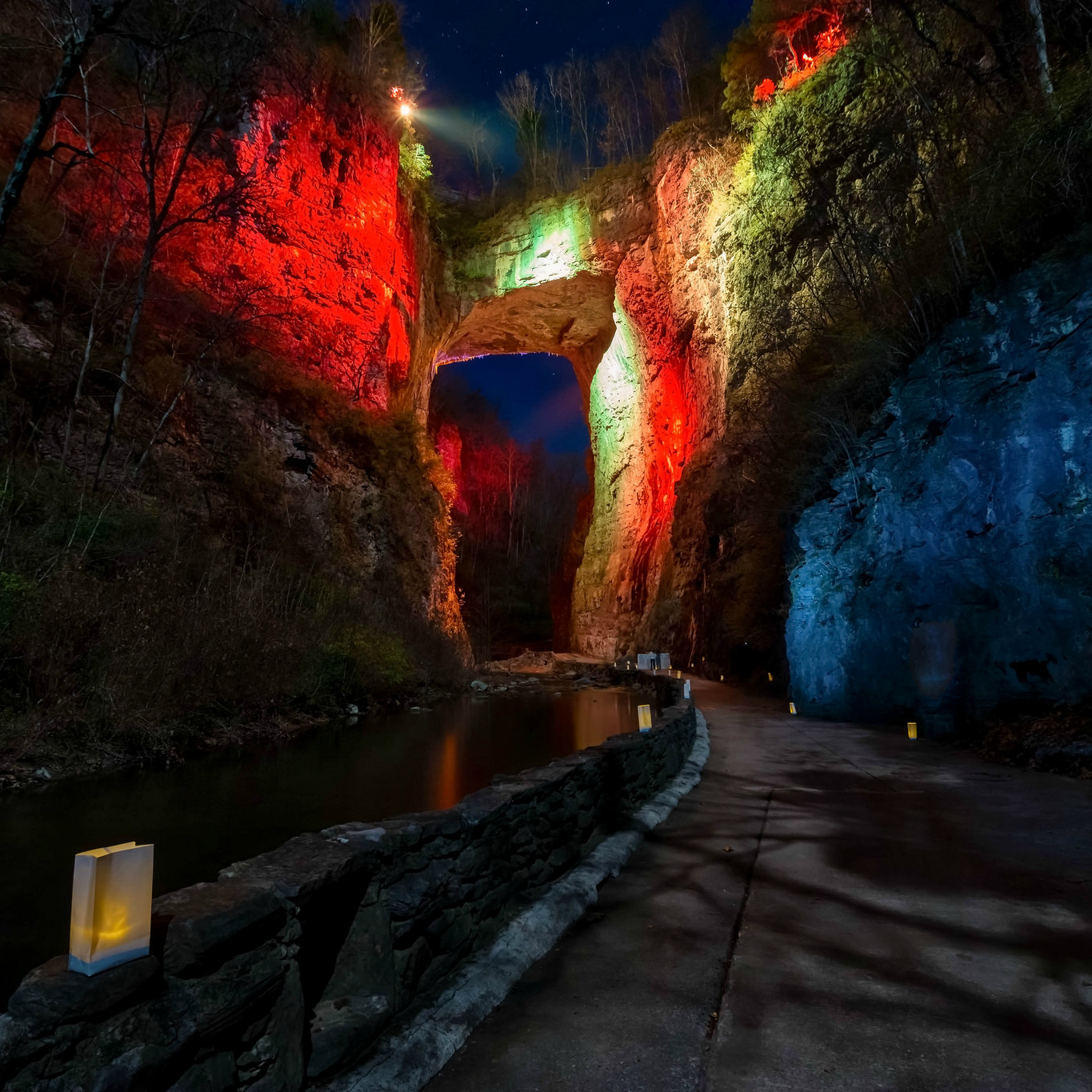 (Editores: Sigan este enlace para descargar una imagen. Pie de foto: Noches de luminarias en Natural Bridge)