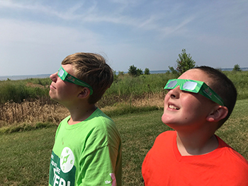 - Use protección ocular adecuada: La única forma segura de ver un eclipse solar es a través de filtros solares especialmente diseñados o anteojos para eclipses que cumplan con la norma ISO 123122 estándar de seguridad internacional. Las gafas de sol normales o los filtros caseros no son seguros para ver el sol. Asegúrese de que sus gafas de eclipse no estén dañadas, rayadas o tengan más de tres años, ya que estos factores pueden comprometer su seguridad. Para garantizar que los visitantes puedan ver el eclipse de manera segura, los parques tendrán un número limitado de anteojos de visualización solar disponibles para la compra. Tienen un costo de $1 más impuestos y estarán ubicados en los centros de visitantes y tiendas de regalos de los parques.