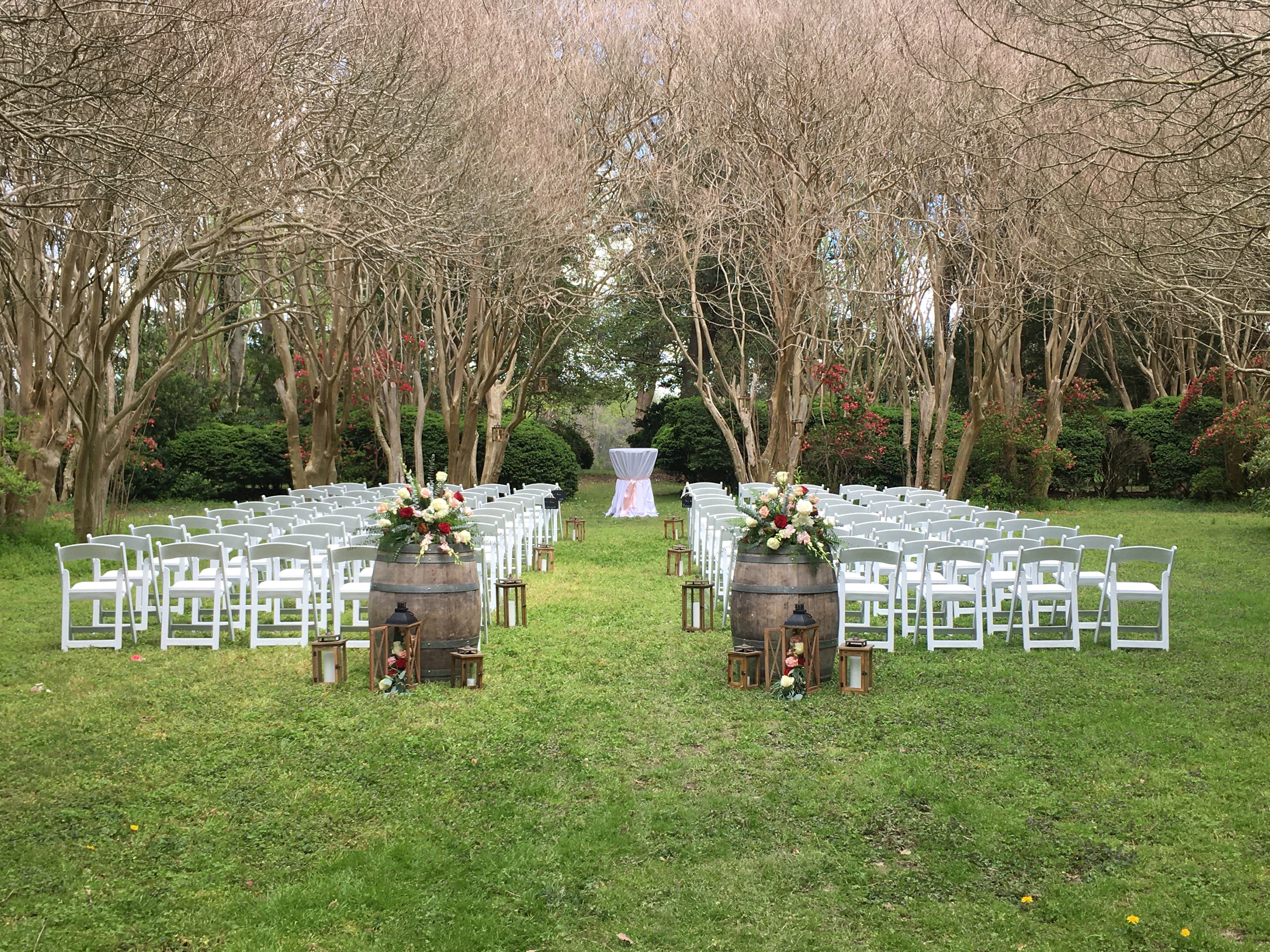 Chippokes ofrece espacios interiores para bodas de todos los tamaños, desde 15 invitados hasta 200 invitados. En la zona histórica, el refugio para conferencias completamente cerrado puede albergar hasta 200 personas para recepciones y cenas de ensayo. Para bodas con 15 o menos invitados, el parque cuenta con la sala de juntas dentro de la mansión Jones-Stewart de estilo anterior a la guerra.