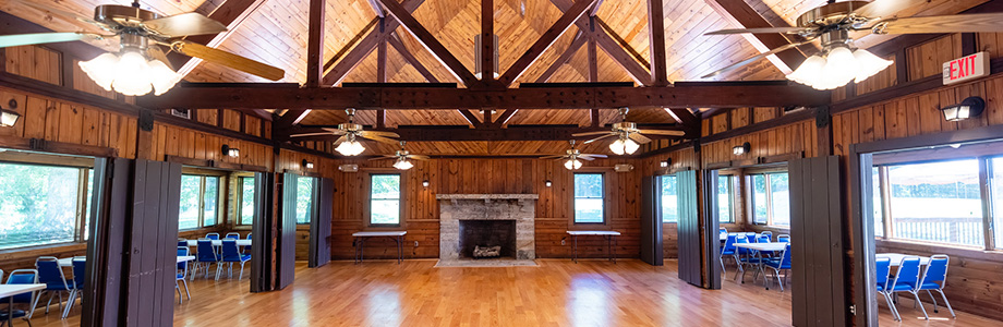 - Shelter 1: Acomoda a 75 personas debajo del refugio. No hay baños, pero hay un baño portátil disponible. El refugio tiene vistas al lago y cuenta con luces, una gran parrilla y una chimenea en cada extremo del refugio. No hay enchufes eléctricos disponibles.